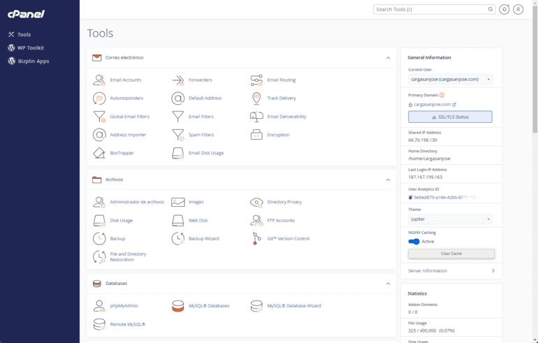 El panel para administrar el hosting de tu negocio, redirecciones de dominios, correos empresariales y mucho más